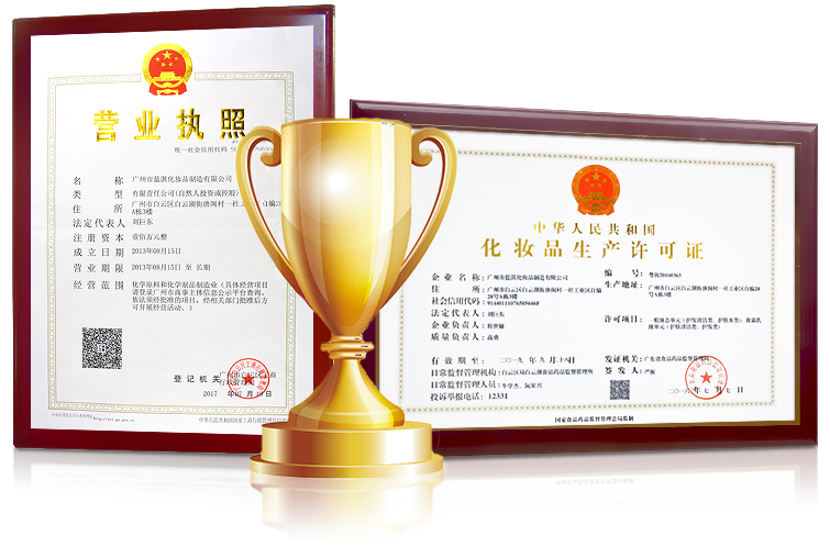• 具有國(guó)家權(quán)威認(rèn)證的化妝品生產(chǎn)資質(zhì)