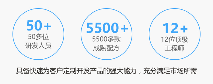 • 擁有上千種成熟配方,緊跟市場(chǎng)熱點(diǎn)潮流,不斷研發(fā)新品,助您搶占市場(chǎng)商機(jī)。